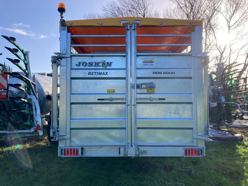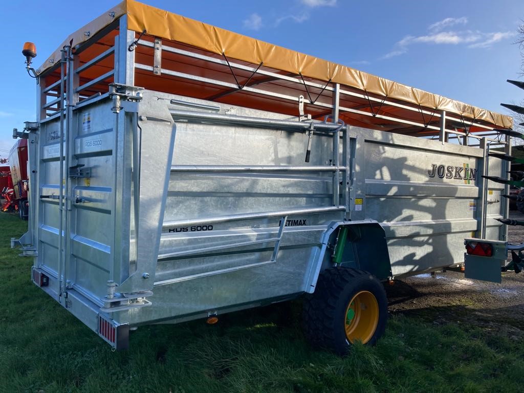 fully galvanised, 6m hydraulic lowering, sprung drawbar with hydraulic jack, front access door,rubberised floor, inner partition gate, rear barn doors, roof cover, 3.6m telescopic loading gates, 445/45R19.5 tyres, mudguards, road lights, side markers, spare wheel mount